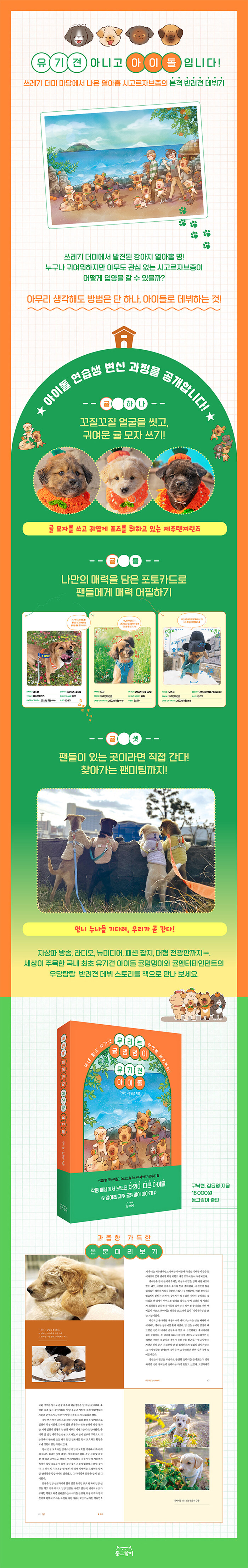 독자들이 모두 다른 매력을 가진 귤멍멍이들을 만나볼 수 있도록, 다양한 사진을 수록했다. 귤멍멍이들의 특징을 살린 귀여운 일러스트도 군데군데 배치되어 있어 한층 읽는 맛을 더했다. 332쪽이라는 긴 호흡의 책을 읽을 때, 중간 중간 쉬어갈 수 있도록 재치 있는 4컷 만화도 준비했다. 귀여운 귤멍멍이들의 사진과, 일러스트, 4컷 만화, 그리고 대담한 모험 이야기가 가득한 종합 선물 세트같은 이 에세이를 독자들에게 자신 있게 권한다.